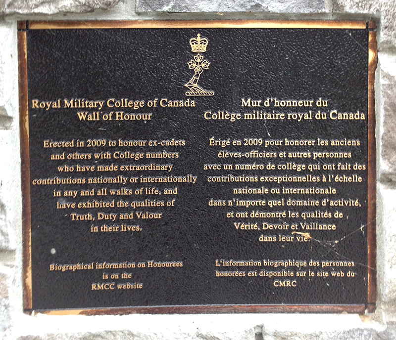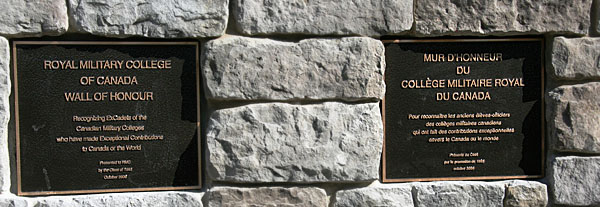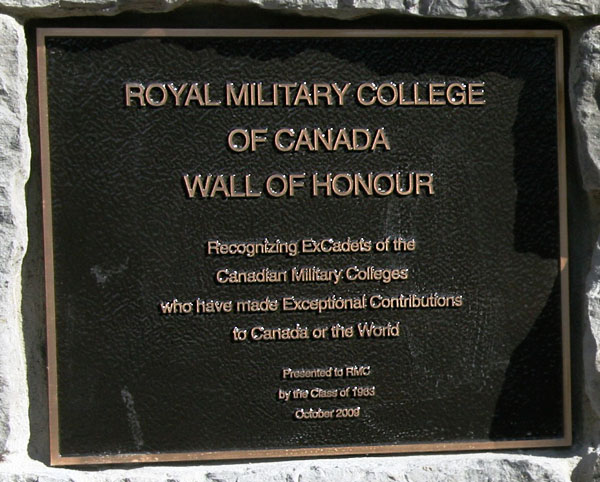 • Royal Military College of Canada Wall of Honour - Recognizing ExCadets of the Canadian Military Colleges who have made Exceptional Contributions to Canada and the World.  Presented to RMC by the Class of 1963, October 2009