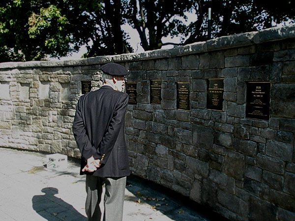 • Old Brigade Ex-Cadet reading bronze plaques on Wall